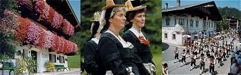 Wunderschöne alte Bauernhöfe mit einzigartigem Blumenschmuck, gesellige Feste,